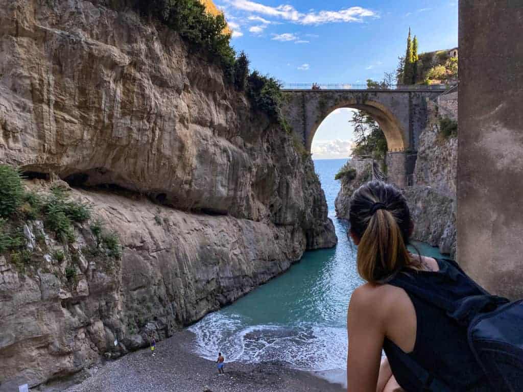 Si parte da Praiano per raggiungere una delle destinazioni più famose della Costa D’Amalfi: Il Fiordo di Furore. Si tratta di una passeggiata a mezza costa che si apre al tipico paesaggio della zona dove il blu del mare, il verde della natura e il grigio-sabbia della roccia si fondono in perfetta armonia. L’itinerario guida i piccoli esploratori alla scoperta di diversi scenari. Il primo è quello del sentiero delle Agavi in Fiore, un percorso che si snoda lungo il Vallone della Praia, caratterizzato dagli elementi tipici della macchia mediterranea governata dall’Agave da cui il sentiero prende il nome. Oltre alla pianta tropicale il percorso regala un bouquet di diversi profumi, fra qui quello del rosmarino e del mirto. Da qui si arriva alla Marina di Praia, per poi addentrasi nelle vie di Barbanera, donna che negli anni ’50 era conosciuta per le sue impeccabili doti di meteorologia ed astrologia. La leggenda narra che la sua casa sia ancora collocata in questi luoghi. Superato questo tratto si ci si imbatte nel sentiero dell’amore, lo si riconosce dalla statua in bronzo che raffigura due innamorati. Da questo punto un’antica scalinata conduce fino al Fiordo di Furore.