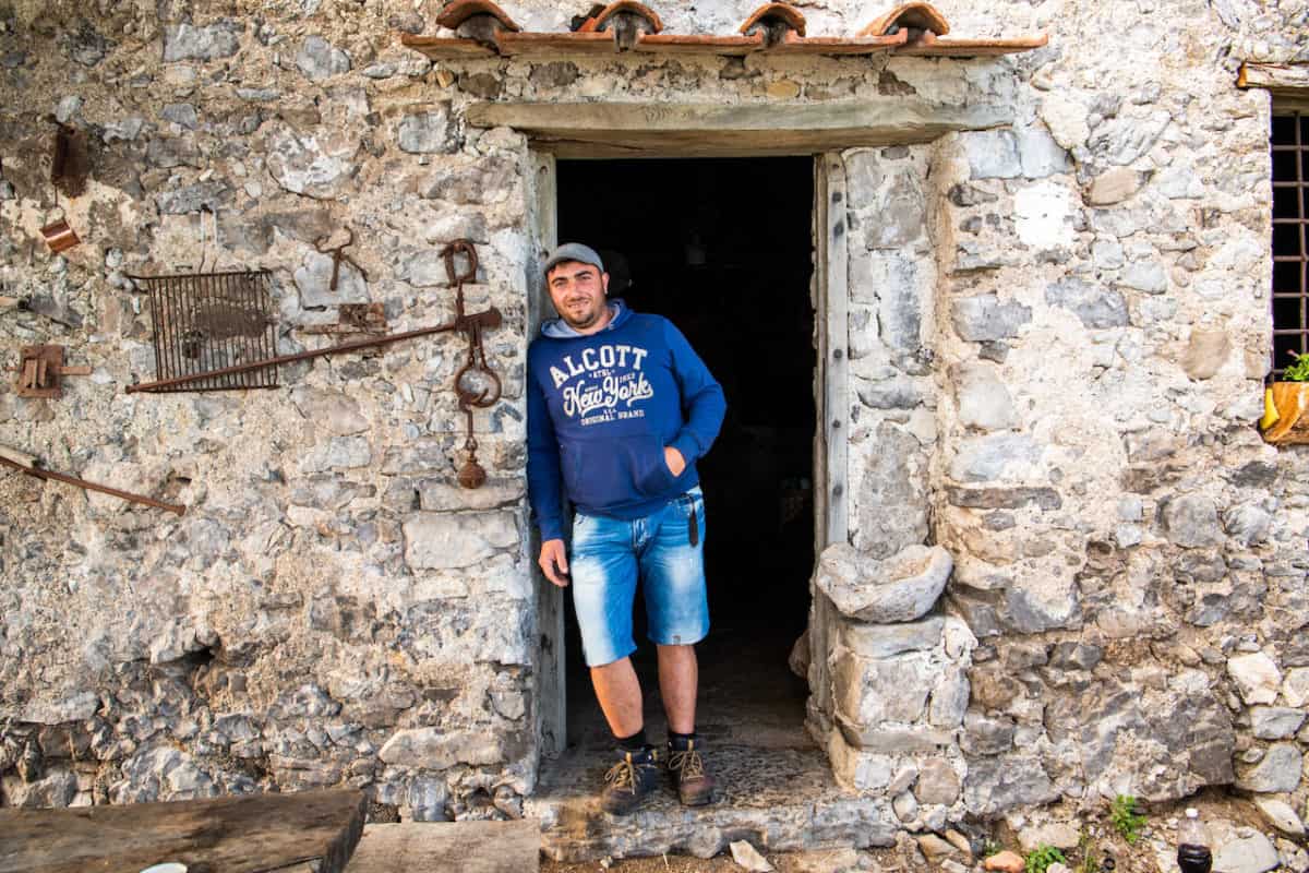 Basta che stamm bbuon. Un ritornello che rientra a tutto tondo nella paremiologia popolare campana, è oggi il leitmotiv che dà grinta ad Antonio. «Antonio Badoglio è il pastore di Agerola che è diventato famoso sul popolato Sentiero degli dei», si presenta, incredulo del suo stesso successo. Coppola, gilet, un aspetto che riporta ai colori della terra, reso ancora più vivo da una risata fragorosa e da profumo di buono, che richiama a tratti l’odore del caprino. Antonio trascorre gran parte della giornata nel suo rudere secolare, nascosto fra i terrazzamenti che fanno da cornice al sentiero, raggiungibile con alcuni scalini che salgono e portano a deviare brevemente dal percorso.