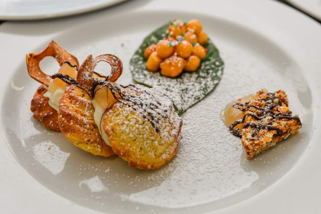 I dolci sono lo spettacolare finale: una carrellata di dolcezza e golosità. Spazio alle zeppole, servite in due versioni, sia ricoperte di zucchero per quelle realizzate con le patate o con il miele per la ricetta con solo acqua e farina. Susamielli e roccocò sono indispensabili, fragranti biscotti dalla consistenza più dura, impreziositi con canditi, mandorle e spezie. Torroncini dal cuore morbido o croccante fanno capolino nei cesti in vimini, pieni di frutta secca, albicocche o fichi, essiccati anch’essi e farciti con noci e scorzette d’arancia. Sua maestà il panettone, re del Natale, è il più atteso di tutti, in compagnia del pandoro per gli amanti dei sapori più semplici. Questi saranno serviti accompagnati da una fredda bottiglia di spumante, volendo rispettare la nazionalità o di champagne in alternativa, testimoniando gli auguri di mezzanotte quando il più piccolo della famiglia, con le spalle coperte da una delle tovaglie più preziose tirate fuori dal corredo, porterà in processione Gesù Bambino. Il resto della famiglia seguirà il piccolo, recando in mano stelle filanti, candele accese ed intonando il classico brano “Tu scendi dalle stelle” composto da Sant’Alfonso Maria Dè Liguori che a Scala visse per molti anni.