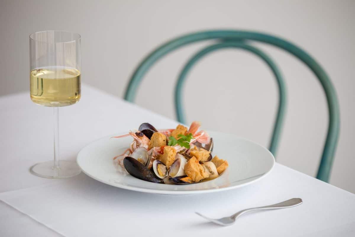 Ostriche e gamberetti non mancano mai in tavola. Courtesy of Hostaria di Bacco