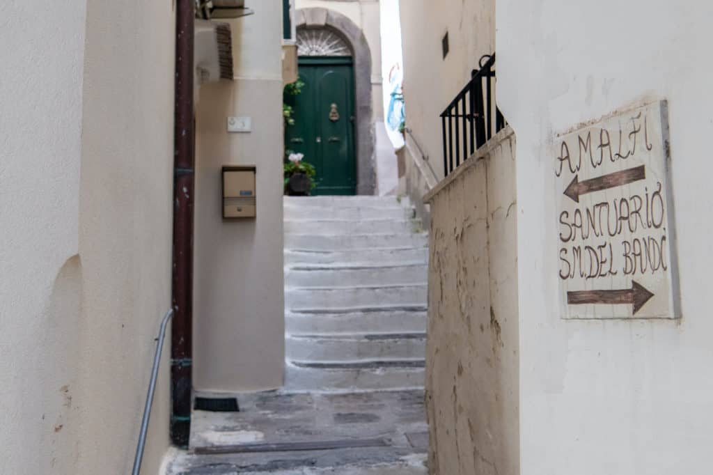 Già di per se stesso, il percorso che porta fin su, merita l’escursione. Perduti nel verticale drappeggio dei quartieri di Atrani ancora sembra di sentire l’eco del “bando”, che dalla medievale chiesetta sul monte Maggiore si intonava alla popolazione sottostante, ai tempi delle Repubbliche Marinare. Non è un caso se ancora oggi l’attuale Santuario (dal 1944, quando il monsignor Rossini lo dichiaró tale) è conosciuto come Santa Maria del Bando. Le prime attestazioni della struttura risalgono al 1187, e secondo una leggenda sembra sia il voto di un condannato a morte graziato dalla Madonna.