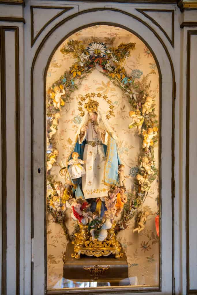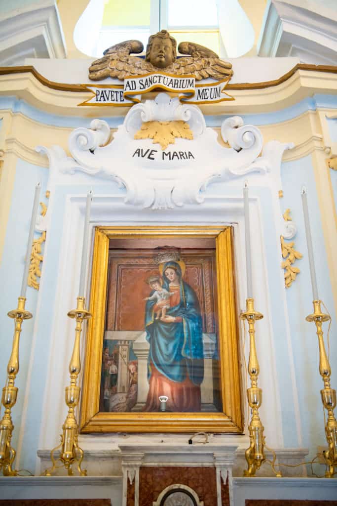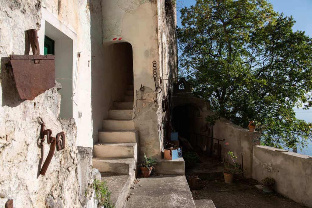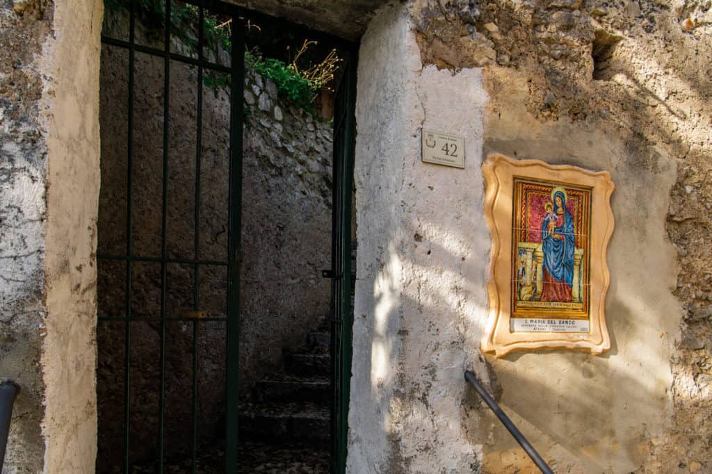 Impettita nella sua sacra veste, Il Santuario, attende i visitatori che percorrano i circa 750 scalini, svincolandosi tra le dedaliche scale atranesi. Il signor Domenico (72 anni), affezionato locale, le ha ormai consumate quelle scale, e ancora le sale come fossero mobili. «Ogni giorno percorro queste scale» – ci dice a passo deciso e senza avere il fiatone – «salgo a curare i giardini sotto il Santuario e tengo impegnate le mie giornate». Lungo la dolce scarpinata, dentro una cortina di sensi vivi, ribolle il profumo selvatico d’alisso, di minestrella, come vapori di un’antica cucina. Nei segmentati vicoletti ci si affaccia all’intimità della comunità locale e all’odore di candido dei panni stesi ad asciugare. «Quello è il punto in cui viene lanciata una cometa tutta illuminata, dritta verso la cattedrale, la notte della vigilia, a mezzanotte in punto», rivela Domenico, fermandosi lungo la salita, all’ampio verone di una casa.