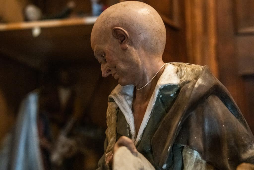 Anche i personaggi del presepe di Amodio avevano i loro soprannomi. Sì, perché l’unicità di questo lavoro minuzioso, consisteva proprio nella riproduzione di persone realmente esistite in quell’epoca e rappresentate in modo allegorico. L’artigiano del presepe non è stato per nulla discriminatorio in questo. Tant’è vero che uno dei personaggi più simbolici è proprio O’ Filippetto, ovvero Filippo Gambardella, notaio del secolo, presentato nelle vesti di uno zampognaro (quasi un preludio ideologico della Livella di Totó). Di lui si diceva che “per la sua posizione sociale ed economica era pieno di boria e altezzoso e di conseguenza inviso ai suoi cittadini”. Eccolo, quindi, nei panni di quello che veniva considerato come un uomo rozzo del ceto sociale basso. Lo si riconosce collocato accanto alla grotta, proprio per la sua calvizie. Cristina e Catolla è un’altra interessante figura del popolo. Una donna anziana con indumenti umili, un grembiule e una gallina in mano. Dietro le spalle reca appesi gli zoccoli: no, non perché camminare scalzi migliora la postura, non per stimolare 70,000 terminazioni nervose né tanto meno per puro senso di liberazione. Per le classi più povere della società le scarpe erano un lusso e pur di non usurare l’unico paia che si possedeva si camminava scalzi. Della voce di Cristina ancora si sente l’eco dei canti intonati per Santa Maria Maddalena, la santa protettrice di Atrani.
