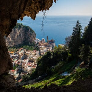 Sacro e profano si mescolano perfettamente nello storico presepe custodito ad Atrani, borgo sapido di brezza marina. È il presepe di cartapesta presente nella Chiesa della Madonna del Carmine, fondata nel 1604 dai rappresentanti di due famiglie locali (Scipione Crespella e Giambattista Vollaro), ma anche sede della Congrega che reca il suo nome. Il fautore di quest’unicum in cartapesta è Vincenzo Amodio, per i paesani Vicienze e Catarina, che lo costruì intorno al 1850. Vicienze non era il solo ad avere un soprannome, o meglio o cuntrannome, pratica molto in voga all’epoca e ancora oggi utilizzata. Questo nomignolo distingueva per lo più le persone (specialmente in un villaggio di pochi abitanti) attraverso i caratteri distintivi di famiglia, di aspetto, di mestiere: una vera e propria iniziazione alla comunità, che spesso durava nel tempo.