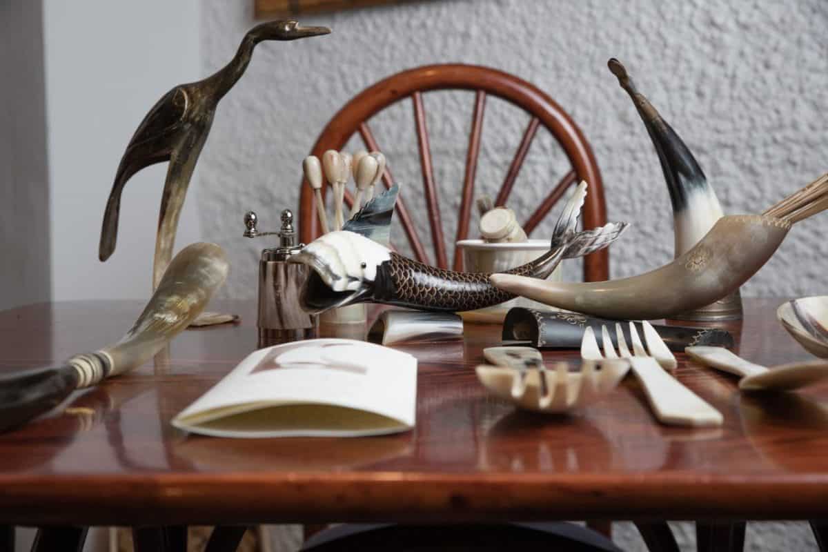 Opere artigiane lavorate con il corno. Courtesy of Hostaria di Bacco