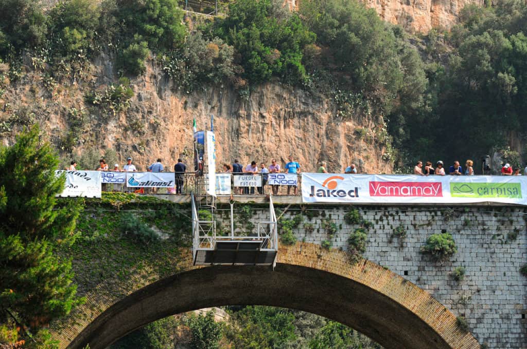 E in un attimo ci si tuffa dalla Germania del 1811, dove è avvenuta la nascita di questo affascinante sport, all’impareggiabile bellezza della Costiera amalfitana del ventunesimo secolo. Un tuffo che parte da lontano. I salinatori di Halle (Germania), che lavoravano alla vaporizzazione dell’acqua del fiume Saale, per estrarne il sale, si lanciavano poi in pozze d’acqua dolce per purgarsi dai residui. L’ebbrezza di essere sospesi ad un soffio dall’acqua, la passione di quel gesto contagiò i ginnasti, che lo trovarono un ottimo modo per esercitarsi nelle loro acrobazie proteggendosi così dal pericolo delle eventuali cadute al suolo.