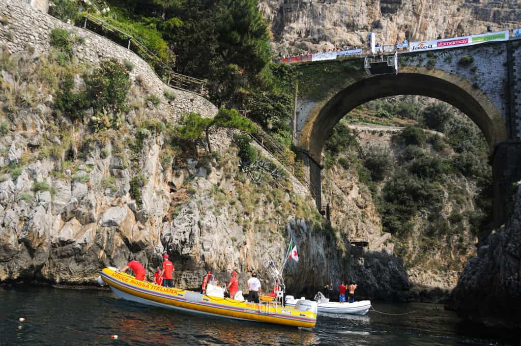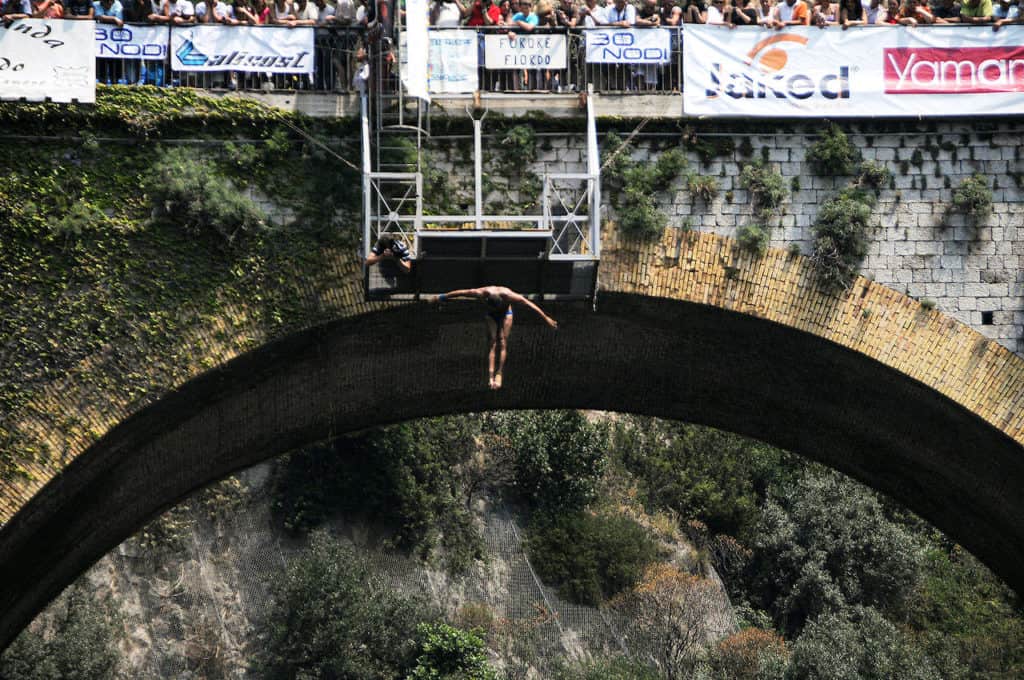 E in un attimo ci si tuffa dalla Germania del 1811, dove è avvenuta la nascita di questo affascinante sport, all’impareggiabile bellezza della Costiera amalfitana del ventunesimo secolo. Un tuffo che parte da lontano. I salinatori di Halle (Germania), che lavoravano alla vaporizzazione dell’acqua del fiume Saale, per estrarne il sale, si lanciavano poi in pozze d’acqua dolce per purgarsi dai residui. L’ebbrezza di essere sospesi ad un soffio dall’acqua, la passione di quel gesto contagiò i ginnasti, che lo trovarono un ottimo modo per esercitarsi nelle loro acrobazie proteggendosi così dal pericolo delle eventuali cadute al suolo.